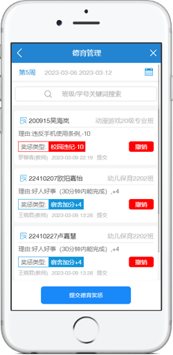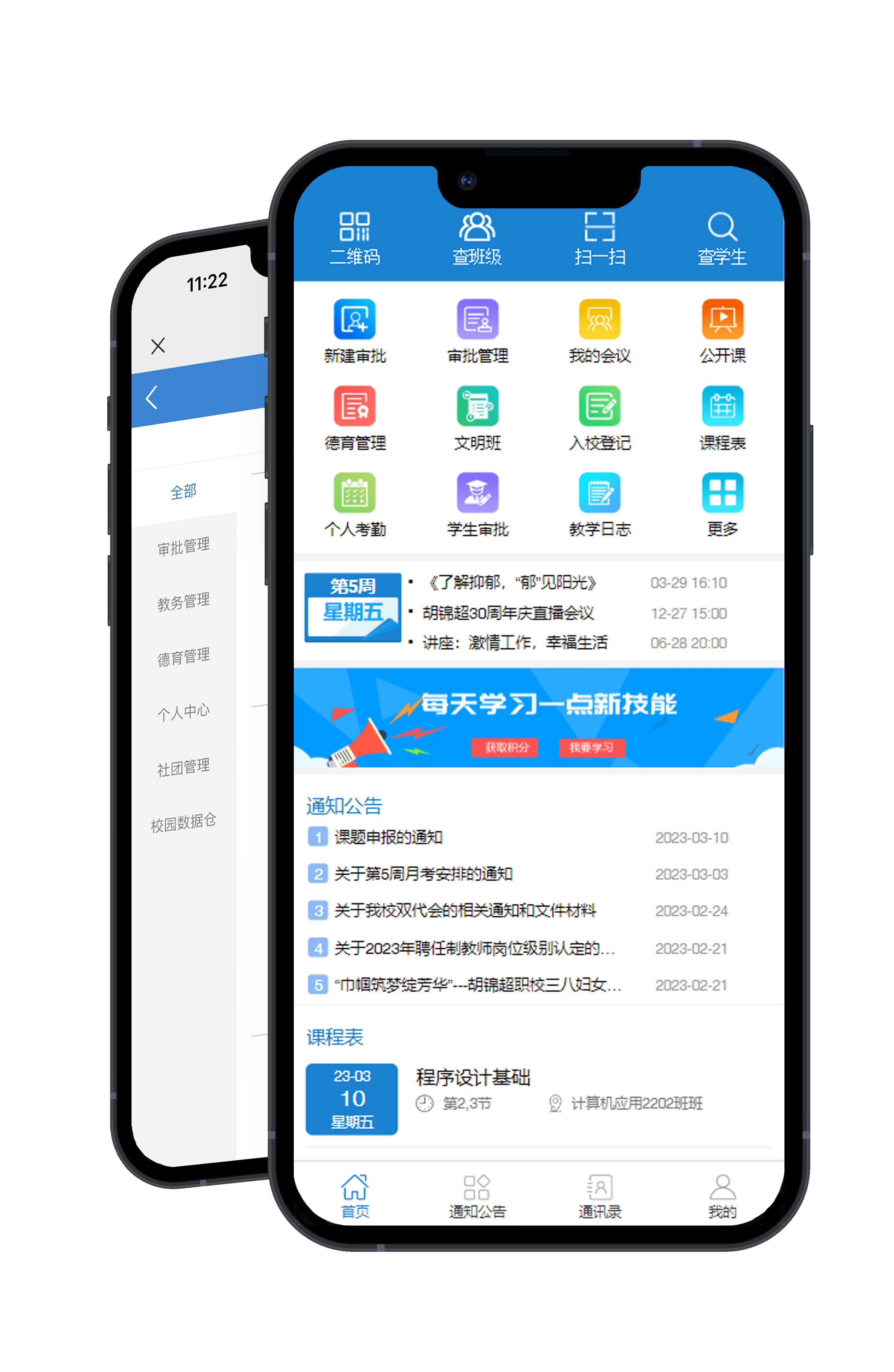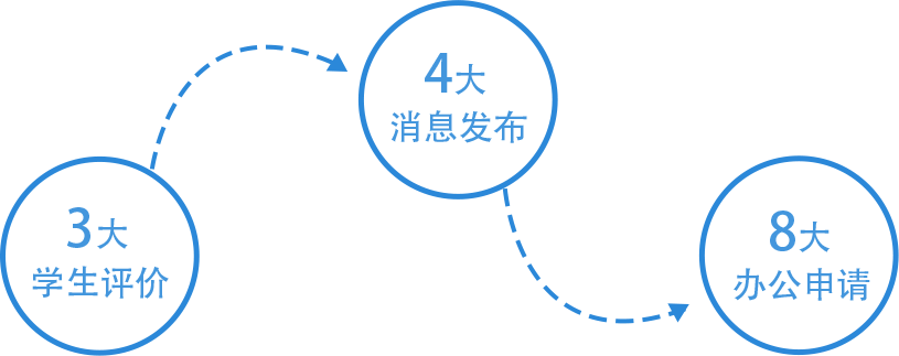 管理班级状况、关注学生在校情况;接收学校任务、通知并下发给家长:管理办公、教务、教学德育、总务等各项业务